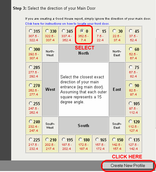 - Step 3: Ignore this selection for Good House Report as you do not know what is your main door direction.