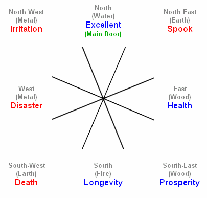 For example if the compass reading for the main entrance door is between 337.5 degrees to 22.4 degrees then in the software program when asked to select the main entrance door direction, please select 15 degrees.